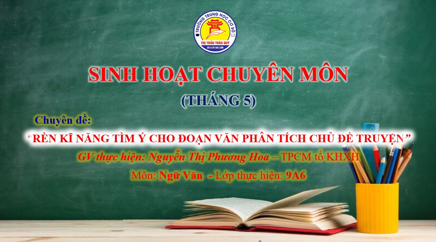 Năm học 2024- 2025, đặc biệt những ngày tháng 5 này, sẽ ghi dấu những bước chân cuối cùng của cả thầy cô và học sinh lớp 9 trên hành trình thực hiện chương trình giáo dục phổ thông 2018 với khóa học đầu tiên. Học sinh lớp 9 năm học này, vừa có những thuận lợi, lại vừa có những khó khăn nhất định khi ôn thi với chương trình mới. Để nâng cao chất lượng giảng dạy và kết quả kì thi vào 10 cho học sinh khối 9, tổ khoa học xã hội, đặc biệt là nhóm Ngữ văn đã chủ động sinh hoạt chuyên môn và xây dựng chuyên đề: “RÈN KĨ NĂNG TÌM Ý CHO ĐOẠN VĂN PHÂN TÍCH CHỦ ĐỀ TRUYỆN”.