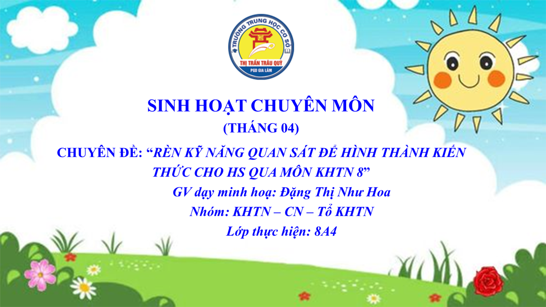 Nhằm nâng cao hiệu quả dạy học bằng cách phát triển kỹ năng quan sát cho học sinh, sáng ngày 18/04/2025, nhóm KHTN – Công nghệ Trường THCS TT Trâu Quỳ đã tham dự chuyên đề: "Rèn kỹ năng quan sát để hình thành kiến thức cho HS qua môn KHTN 8" do đồng chí Đặng Thị Như Hoa thực hiện.