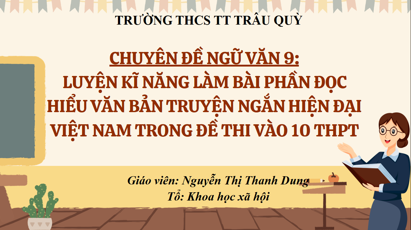 Chuyên đề môn Ngữ Văn lớp 9 “Luyện kĩ năng làm bài phần đọc hiểu văn bản truyện ngắn hiện đại Việt Nam trong đề thi vào lớp 10 THPT” trường THCS TT Trâu Quỳ.