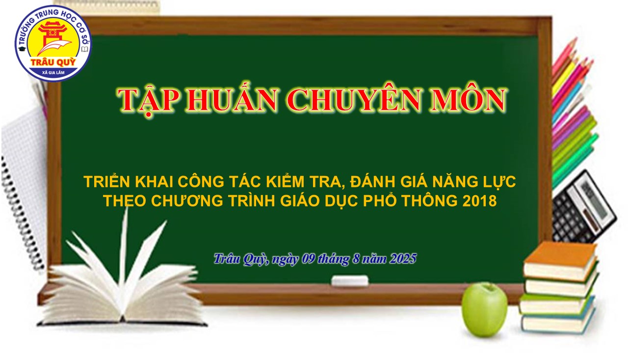 Sáng ngày 09/8/2025, tại Trường THCS Trâu Quỳ, Ban Giám hiệu nhà trường đã tổ chức buổi tập huấn online triển khai công tác kiểm tra, đánh giá năng lực học sinh theo CV 209/DAE ngày 21/07/2025 của Sở Giáo dục và Đào tạo Hà Nội đối với các môn học: Toán, Ngữ văn, Khoa học tự nhiên, Lịch sử và Địa lí, Tin học, Giáo dục công dân theo Chương trình Giáo dục phổ thông 2018.