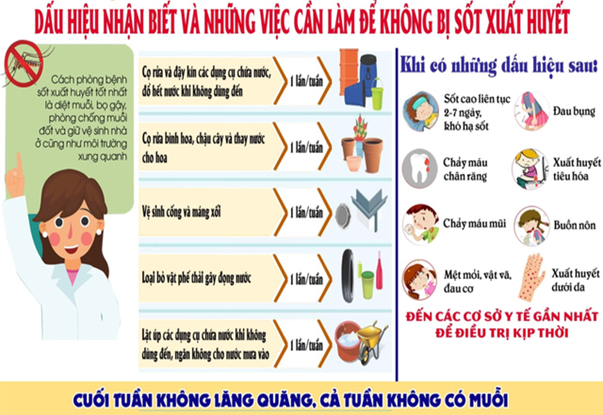 + Thu gom, hủy các vật dụng phế thải trong nhà và xung quanh nhà như chai, lọ, mảnh chai, mảnh lu vỡ, ống bơ, vỏ dừa, lốp/vỏ xe cũ, hốc tre, bẹ lá..., dọn vệ sinh môi trường, lật úp các dụng cụ chứa nước khi không dùng đến